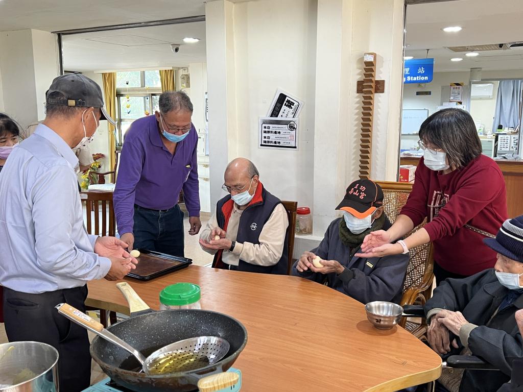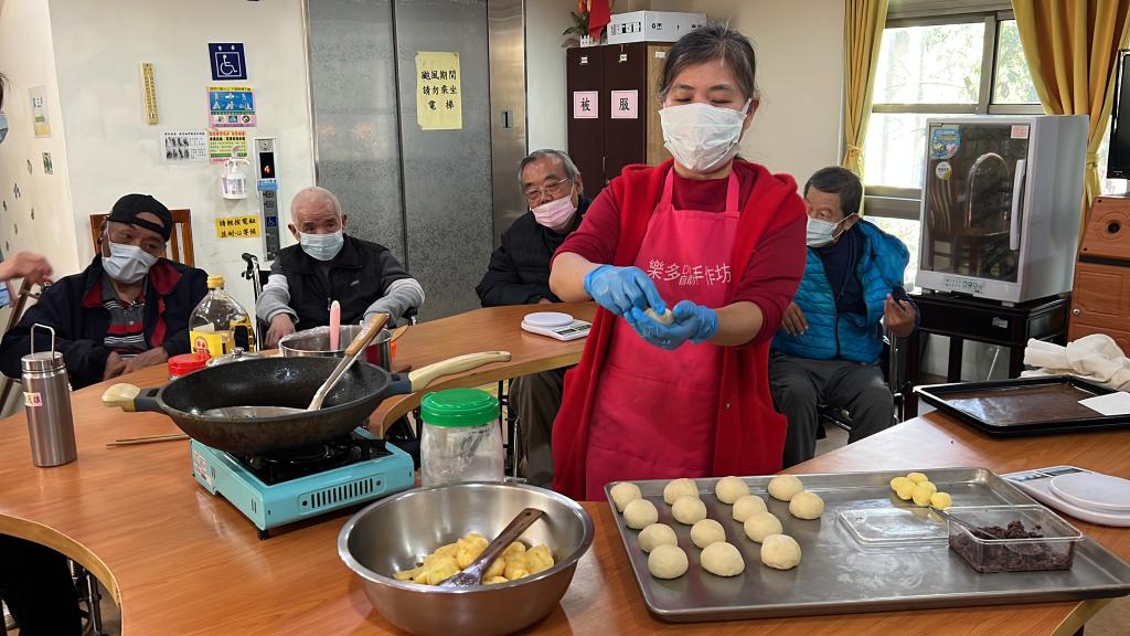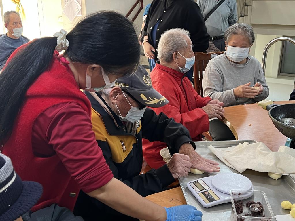 長輩們一邊動手製作,一邊分享年輕時做點心、過節備料往事,現場氣氛溫馨熱絡,笑聲不斷;即使無法久坐或長時間操作長輩,也能透過觸摸麵糰、協助包餡等方式參與其中,感受到被尊重與重視。