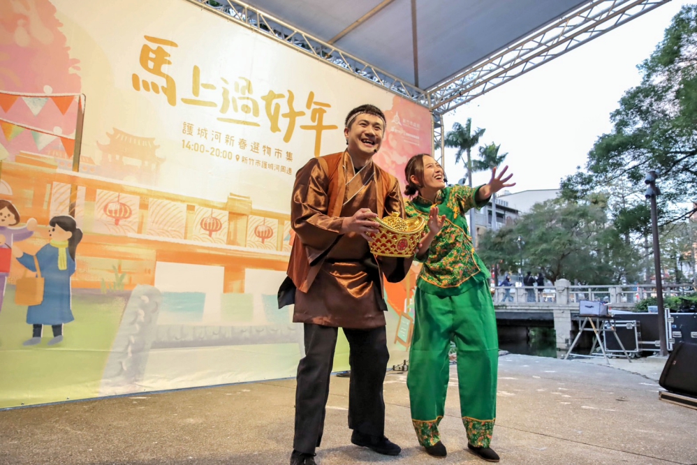 ▲竹市「護城河新春選物市集」於護城河畔圓滿落幕,舞台區於下午時段吸引許多親子家庭駐足,兒童劇演出讓小朋友專注投入、笑聲不斷,成為市集溫馨畫面之一。(圖/竹市府提供)