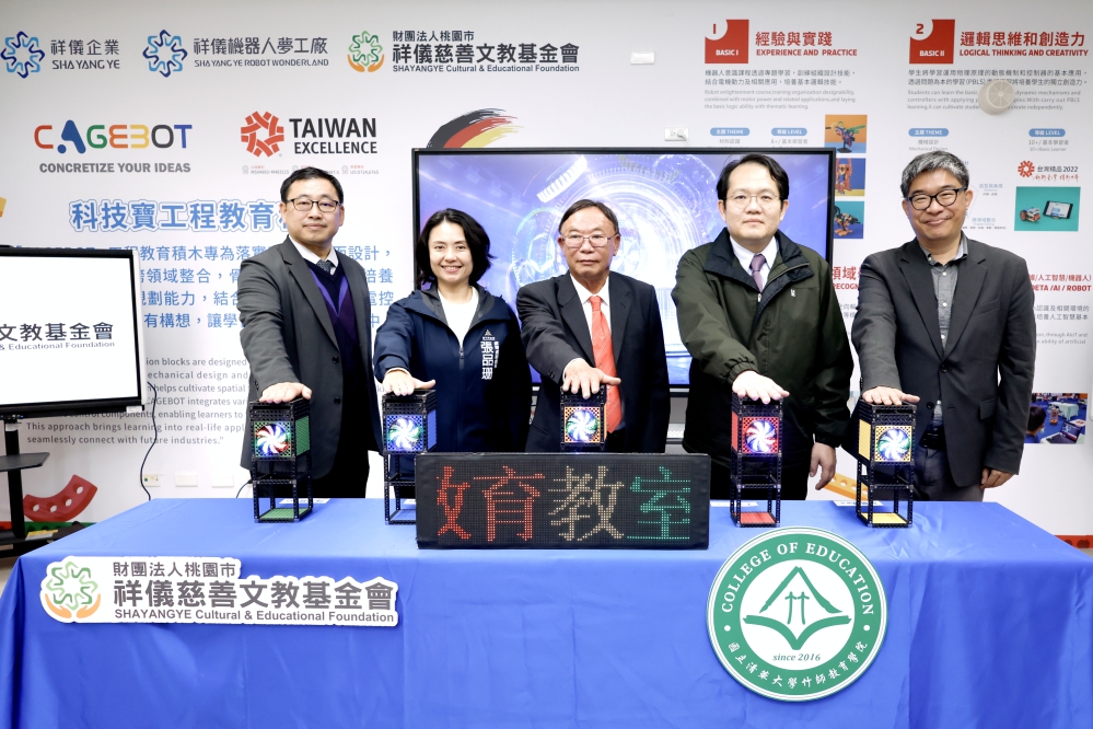 ▲祥儀慈善文教基金會今(1/26)日與清大竹師教育學院共同辦理STEAM教育教室啟用儀式暨首場師資培訓活動。現場展示祥儀的台灣精品科技寶CAGEBOT系列教育機種。(圖/祥儀慈善文教基金會提供)