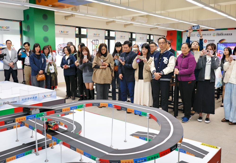 ▲祥儀慈善文教基金會今(1/26)日與清大竹師教育學院共同辦理STEAM教育教室啟用儀式暨首場師資培訓活動。現場展示科技寶CAGEBOT戰神探險車-立體賽道示範。(圖/祥儀慈善文教基金會提供)