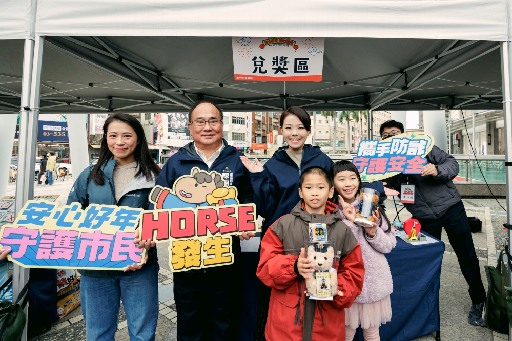 新竹市政府為強化農曆春節前後重要節日期間防詐騙宣導作為,提升市民對各類詐騙手法的辨識能力,今(1/31)日結合警察局於遠東巨城購物中心辦理115年「安心好年.HORSE(好事)發生」加強重要節日識詐宣導活動,活動現場規劃三大防詐主題關卡,透過創新互動方式,讓防詐觀念深入市民日常生活,降低詐騙案件發生風險。