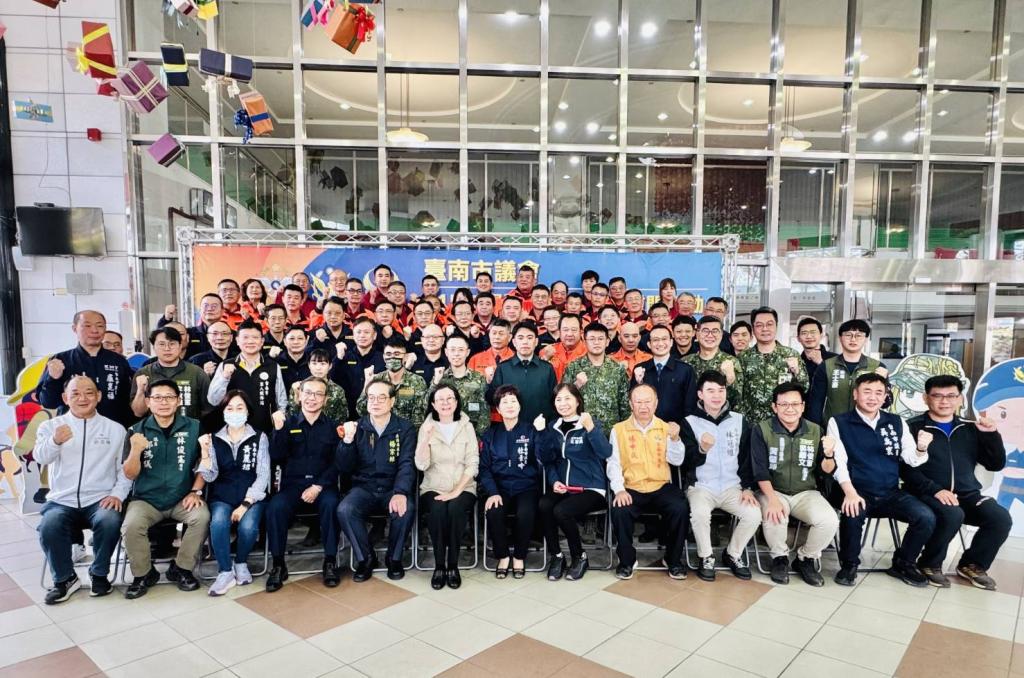 【大成報記者于郁金/臺南報導】春節將屆,為感謝春節期間仍須堅守崗位、守護市民安全軍警消人員,臺南市議會於30日下午舉辦「守護臺灣感謝有您」軍警消春節聯合慰問活動;由台南市軍人服務站劉可雲站長出席陪同,包括邱莉莉議長、楊中成、郭鴻儀、黃麗招、 Ingay Tali 、王家貞、黄肇輝、許至椿、吳禹寰、林冠維、杜素吟議員及林志展副議長、李啟維、盧崑福、林燕祝、鄭佳欣議員代表等出席慰問,向長年守護民眾安全軍警消弟兄姊妹表達誠摯敬意,並致贈春節慰問金。