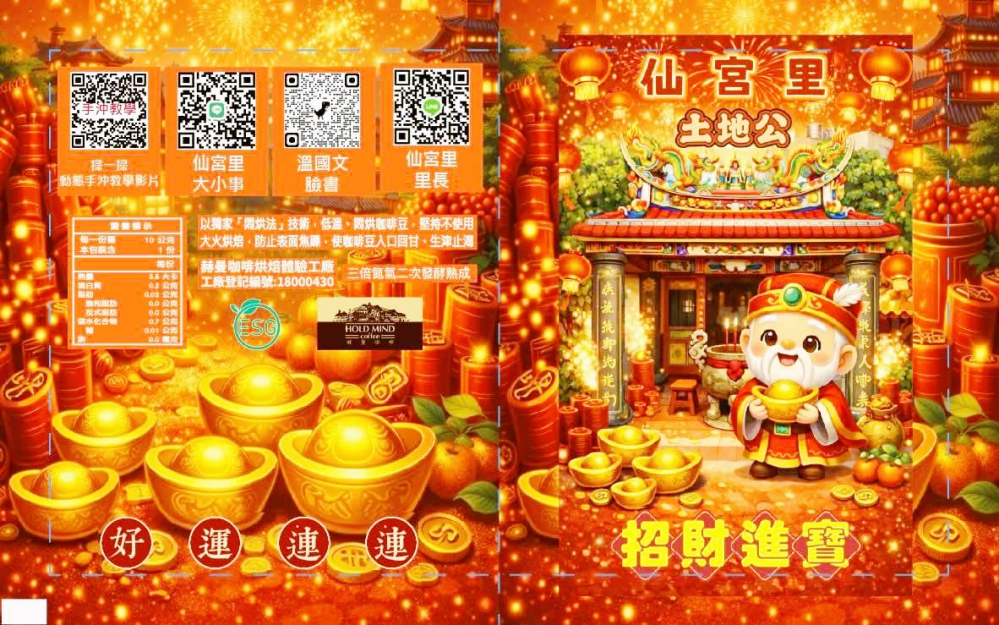 ▲赫曼咖啡聯名仙宮里土地公推出加持福氣的招財咖啡包,並饋贈仙宮里鄉親共計二千包,期為仙宮里帶來更多福氣財氣,並喜迎2026馬年到來!