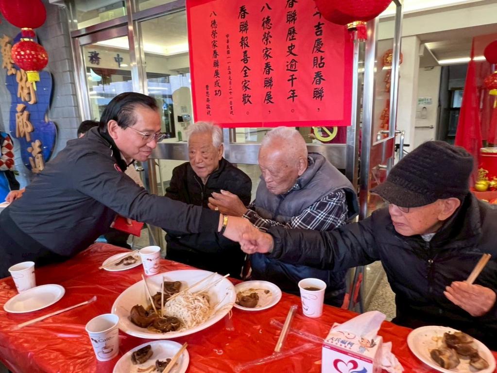 為迎接農曆新年到來,傳遞桃園市政府對高齡長輩的關懷與祝福,桃園市社會局陳寶民局長日前代表桃園市長蒞臨八德榮家,出席「元氣馬到・九秩迎春」活動,親自致贈新春福袋,並與現場70多位90歲以上長輩一同享用象徵健康長壽的豬腳麵線,在溫馨熱鬧的氛圍中歡喜迎新年。