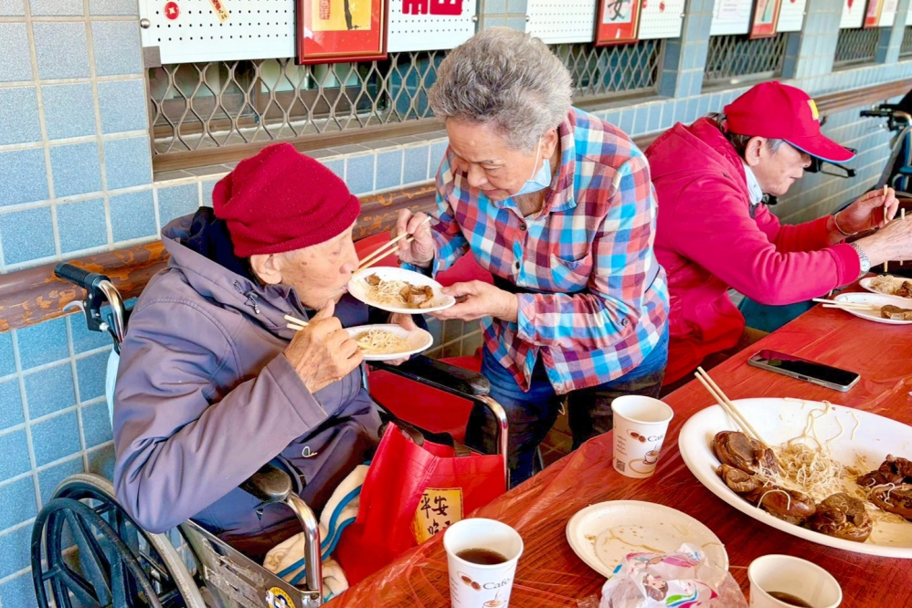▲八德榮家舉辦「元氣馬到・九秩迎新春」活動,高齡長輩在活動中展現深厚情誼,互相協助餵食豬腳麵線,溫馨互動畫面令人動容,也為新春團聚增添一抹暖意。(圖/八德榮家提供)