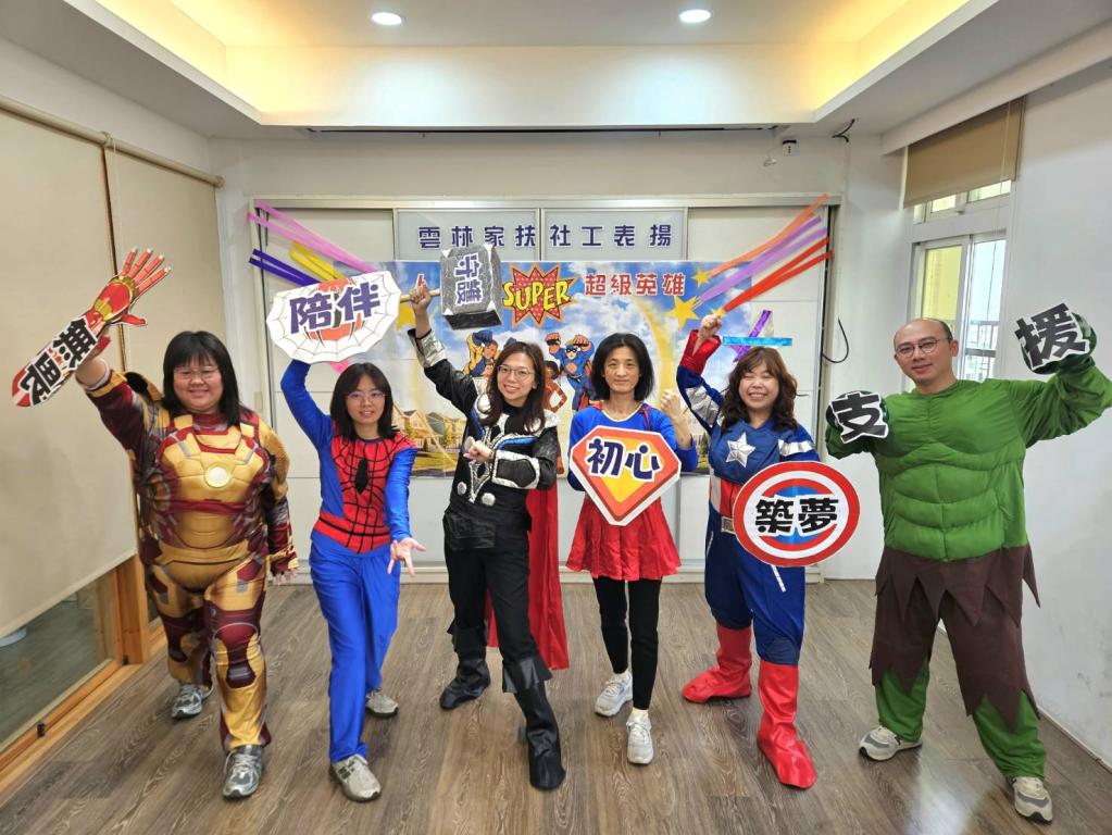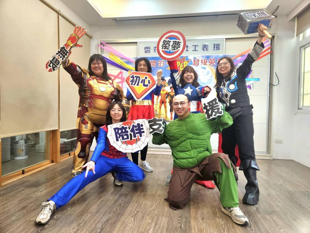 【大成報/雲林報導】守護弱勢社工猶如超級英雄挺身社會每一個角落,雲林家扶優秀社工陳品儒獲縣府30年資身敬業獎;李依盈榮獲縣府20年及衛福部20年資身敬業雙料獎;李欣薇獲頒10年資身敬業;胡雁凜、蘇鈺慧獲服務績優獎;沈建儀獲熱心服務獎,6位家扶人化身「超人、美國隊長、雷神、蜘蛛人、鋼鐵俠、綠巨人」等英雄,陪伴家庭之間,守護失依少年更是弱勢家庭重要力量,人間英雄在身邊。