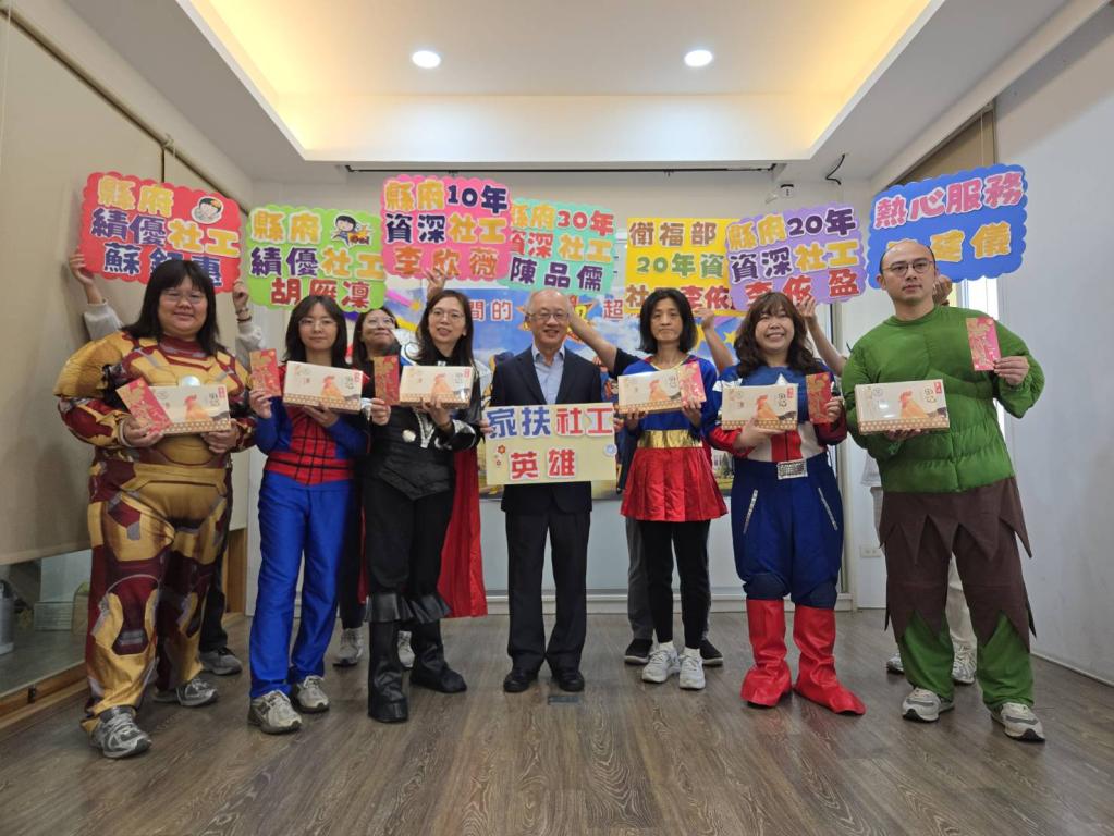 雲林家扶陳燦勲主委肯定獲獎社工,照顧弱勢兒少與家庭,串接各項資源,輔導與陪伴,猶如「英雄」存在,特別頒發獲獎社工「英雄」紅包,給予最佳肯定鼓勵;吳裕田副主委送來「英雄能量飲-滴雞精」滋養身體,期盼社工英雄們照顧弱勢族群同時,更要維持強健體魄。