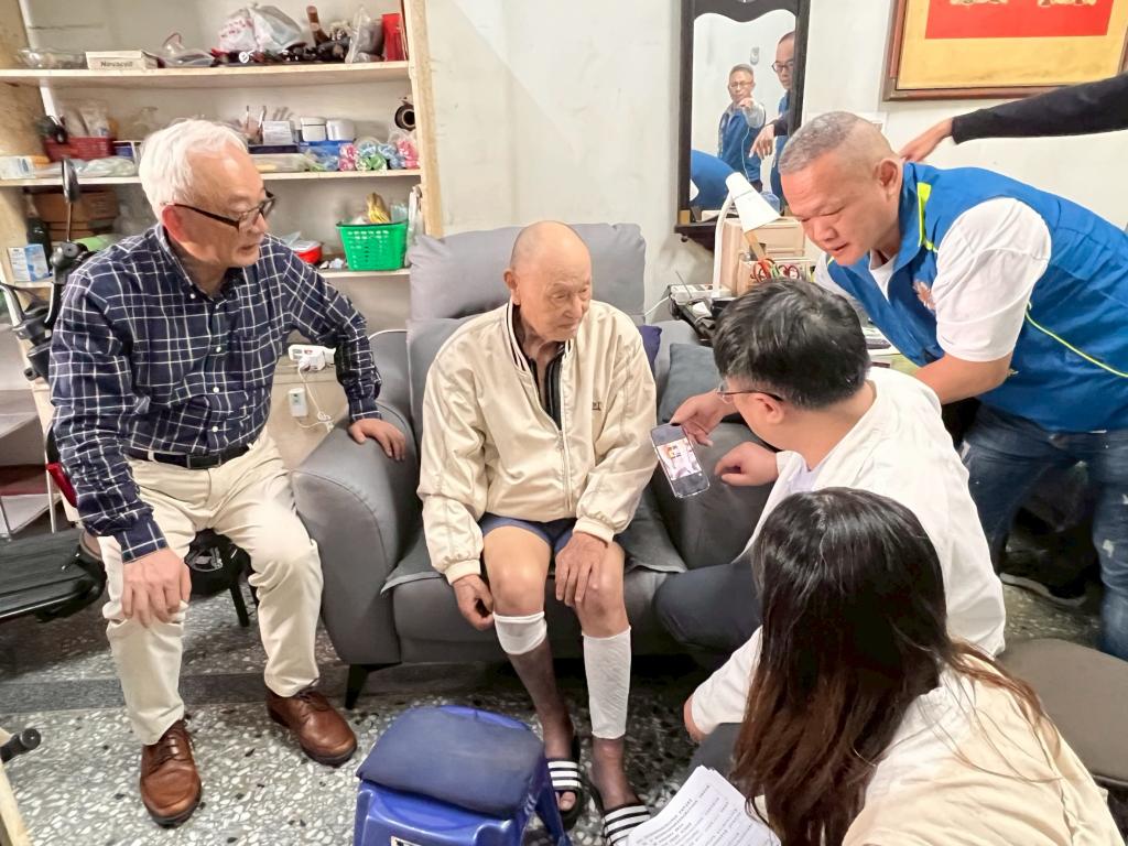 陳副主委首先探視92歲張伯伯,與陪同訪視榮總醫師及護理師,悉心關懷健康並給予溫馨叮嚀;另到遺眷李奶奶家,則是傾聽老人家心情並給予情緒支持。