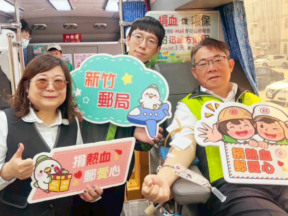 ▲新竹郵局「捐熱血.郵愛心」關懷社區捐血活動,邀請民眾踴躍參與,以實際行動挽袖捐血,為社會傳遞溫暖與希望。(圖/新竹郵局提供)