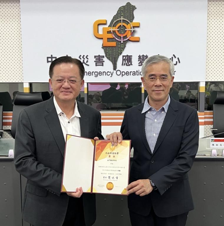 【大成報記者陳金/金門報導】為全面強化消防人員工作安全與健康保障,內政部推動「建構消防人員工作安全衛生作業中程計畫」,並於114年度辦理全國績效管考。金門縣消防局表示,在本次評核中,憑藉完善制度規劃、務實執行成果及持續精進作為,整體表現深獲肯定,榮獲114年度績效管考滿分105分「特優第一名」佳績,在全國24個單位拿下第1名,局長呂英華親赴內政部消防署,接受署長蕭煥章頒獎肯定。
