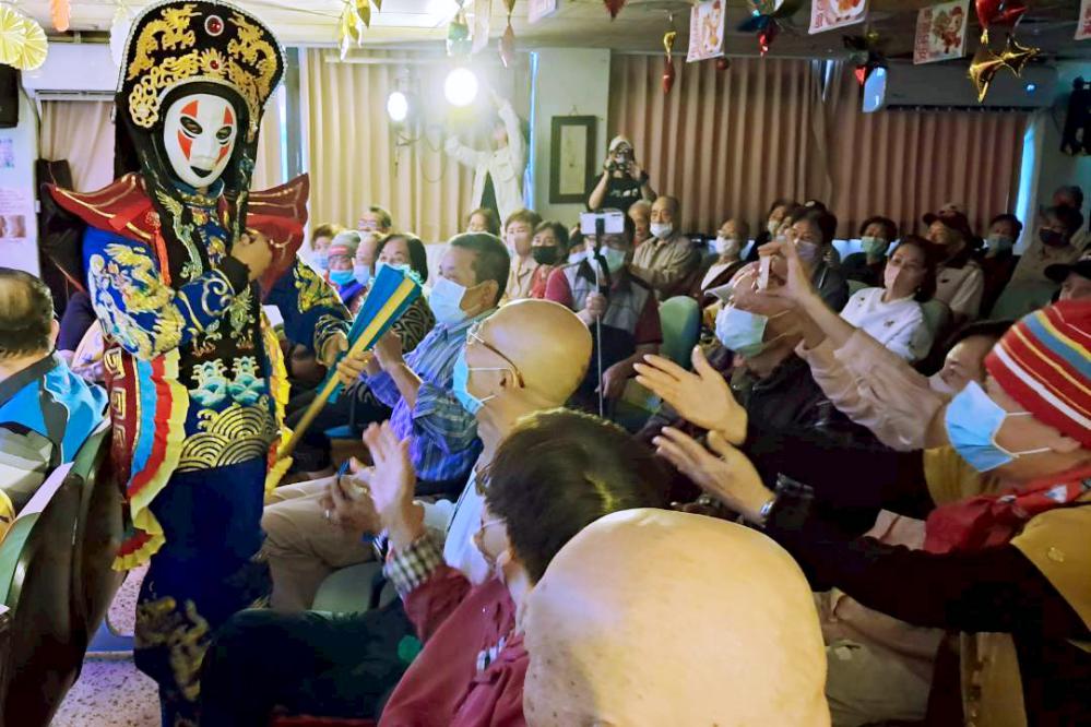 ▲關懷八德榮家長者日常,何歡劇團舉辦「翻轉生命力」巡迴義演活動,川劇變臉表演走入觀眾席與長者近距離互動,現場氣氛熱烈,展現活動帶來的歡樂與活力,也讓住民留下深刻而美好的回憶。(圖/八德榮家提供)