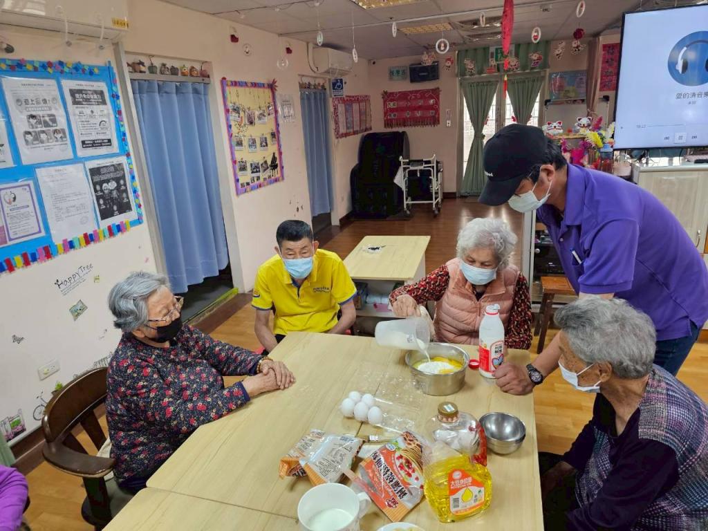 活動開始後,現場氣氛既認真又溫馨;長輩們在照服員引導下,分工合作將雞蛋與牛奶緩緩拌入麵糊,有人負責攪拌、有人觀察質地,彼此交換著過往在家中下廚心得。