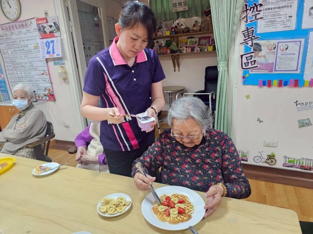 家主任蘇再勝表示:榮家一直致力於將「生活即是復健」精神融入日常,製作鬆餅看似簡單,但從攪拌、舀漿到裝飾擺盤,都能有效刺激長輩末梢神經與專注力;看到長輩們在裝飾鬆餅時那種專注且滿足眼神,讓我們深信日照中心不只是照護場所,更是他們發揮創意、感受尊嚴生活舞台;未來我們將持續推動更多元化五感活動,讓每位長輩都能在此寫下精彩老後篇章。(于郁金翻攝/彰化榮家提供照片)