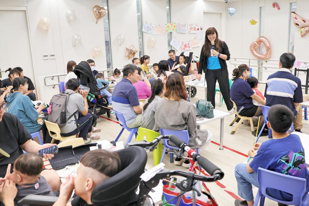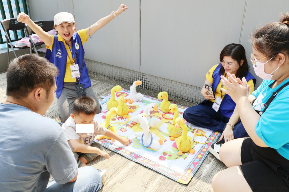 ▲心路基金會舉辦「第十二屆早療兒童地板滾球聯誼賽」,活動過程中也設置趣味關卡,讓孩子們在空檔時間能與家長一齊親子互動。(圖/心路基金會提供)