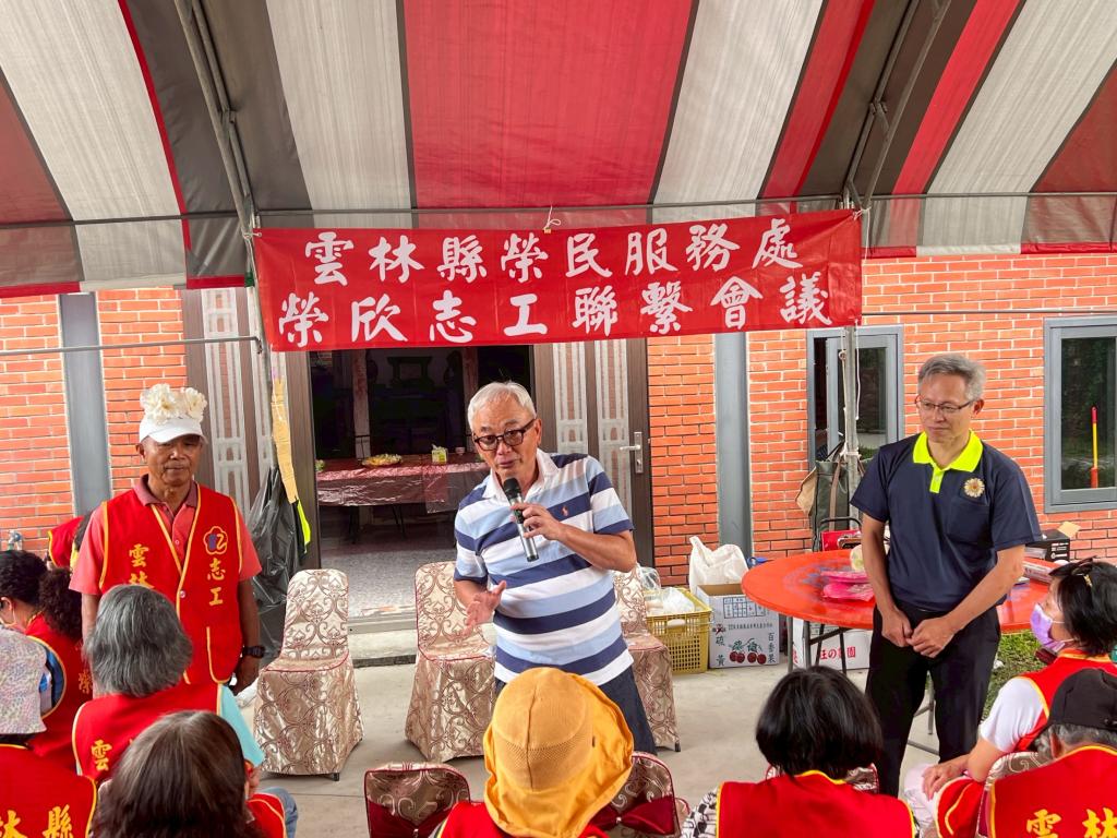 是日活動中,輔導會陳進廣副主任委員特別蒞臨指導,強調輔導會安心御老服務榮民眷最新政策方向,並與志工面對面交流,關心第一線服務推動情形,同時邀請共同推動安心御老合作單位,包括雲林縣府衛生局曾春美局長、社會處林文志處長、欣雲天然氣公司林裕盟董事長、陸戰隊協會周保谷理事長及榮欣志工蔡永盛顧問,共襄盛舉。