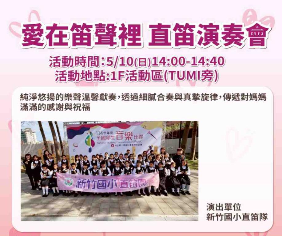 ▲新竹SOGO於母親節當天邀請新竹國小直笛隊,於1F活動區將帶來溫馨組曲,陪伴民眾在輕柔樂聲中感受節慶氛圍與親情溫暖。(圖/新竹SOGO提供)