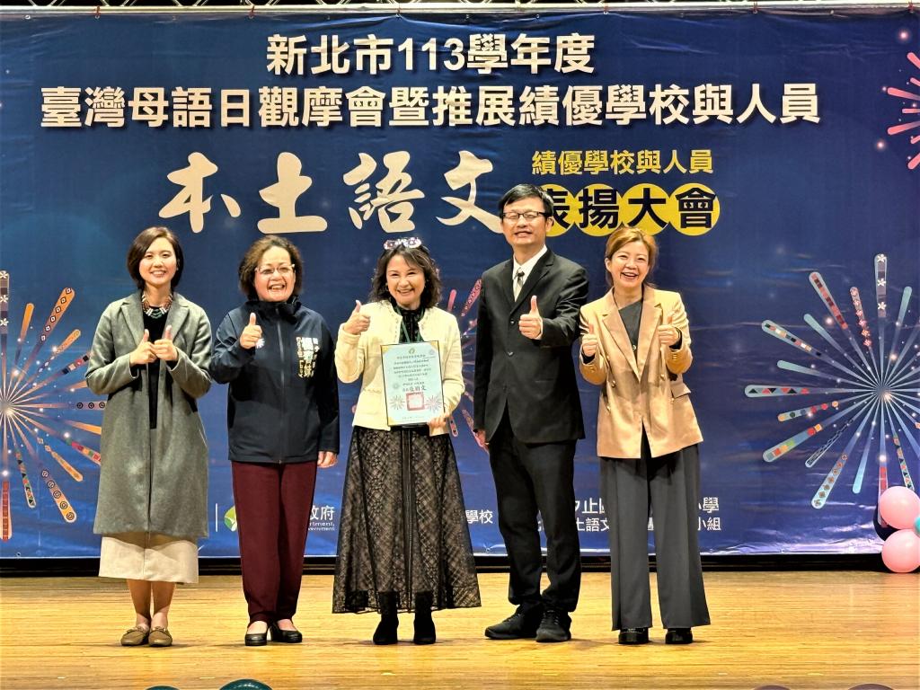 (大成報記者張玉玲/新北報導)為推動語言文化延續與創新學習,新北市教育局於今(21)日世界母語日在客家文化園區舉辦「113學年度臺灣母語日觀摩會暨推展本土語言績優學校與人員表揚大會」,客家事務局劉冠吟局長及原住民族行政局Siku Yaway林瑋茜局長也到場參與,三位局長共同宣示跨局處推動本土語,並表揚全市本土語言推廣表現卓越的學校與教師。本(113)學年度共有100所學校及6位績優教師獲獎,獎項包含本土語文影音創意說唱讚、母語日活動績優學校、本土語言認證績優學校獎、本土語文績優人員暨團體獎及資深優良族語老師獎等,親師生透過創意教學及趣味學習傳承在地語言,展現亮眼成果。