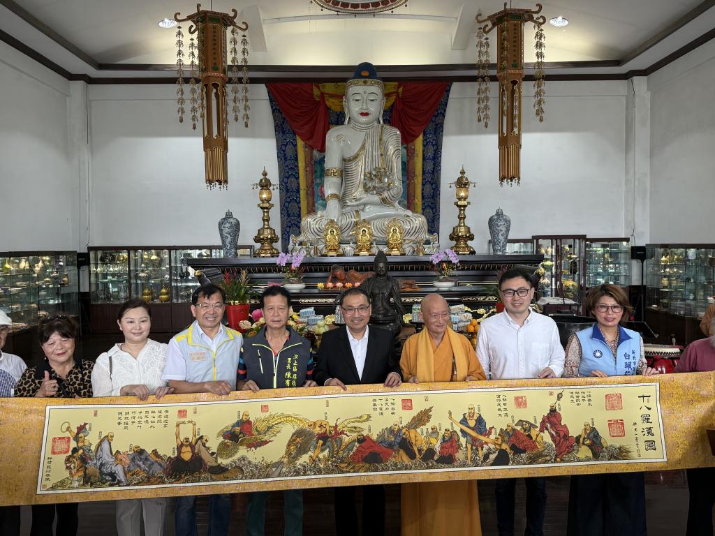 圖說:聖覺寺贈送市府「十八羅漢圖」,象徵佛法護佑、正念常存。
