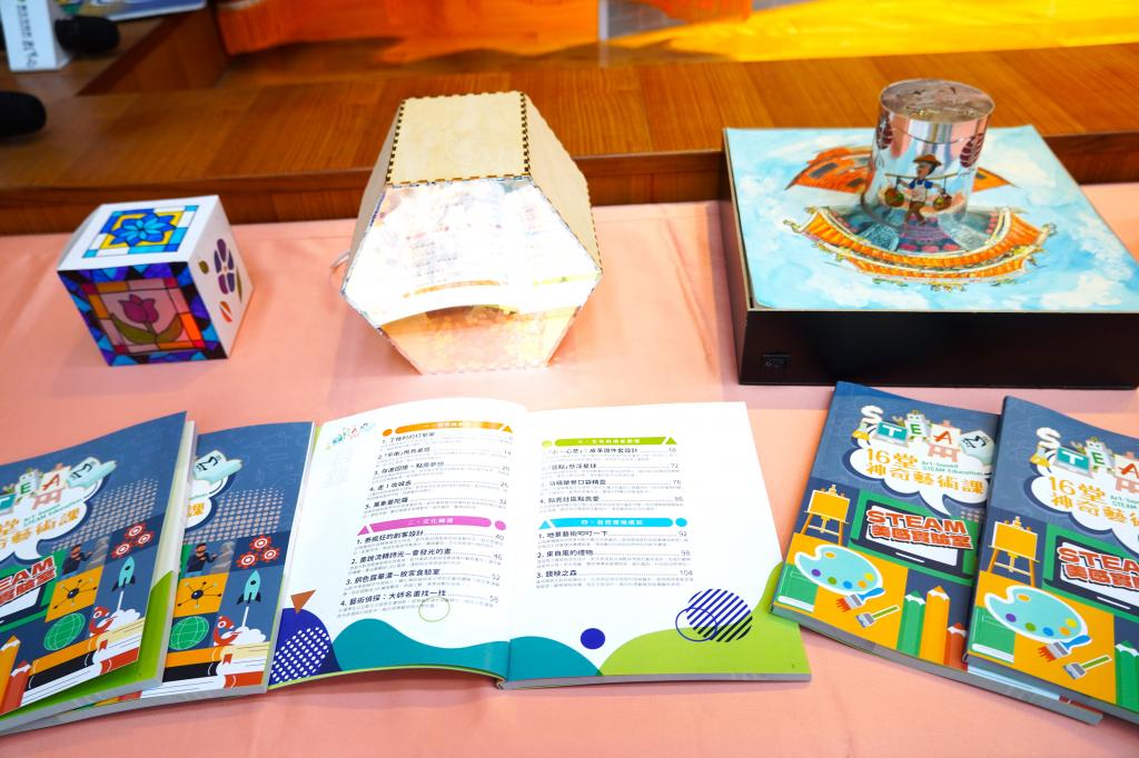 圖說:新北市教育局發表藝術steam課例專書,並展出藝術steam作品。