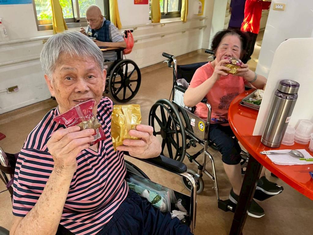 陳奶奶則拿著烏龍綠豆凸期待地說:「這個口味我還沒吃過,等會兒一定要嚐嚐」。而長輩們收到香甜桂圓糕紛紛表示:熟悉桂圓香氣,勾起過往記憶,倍感窩心。