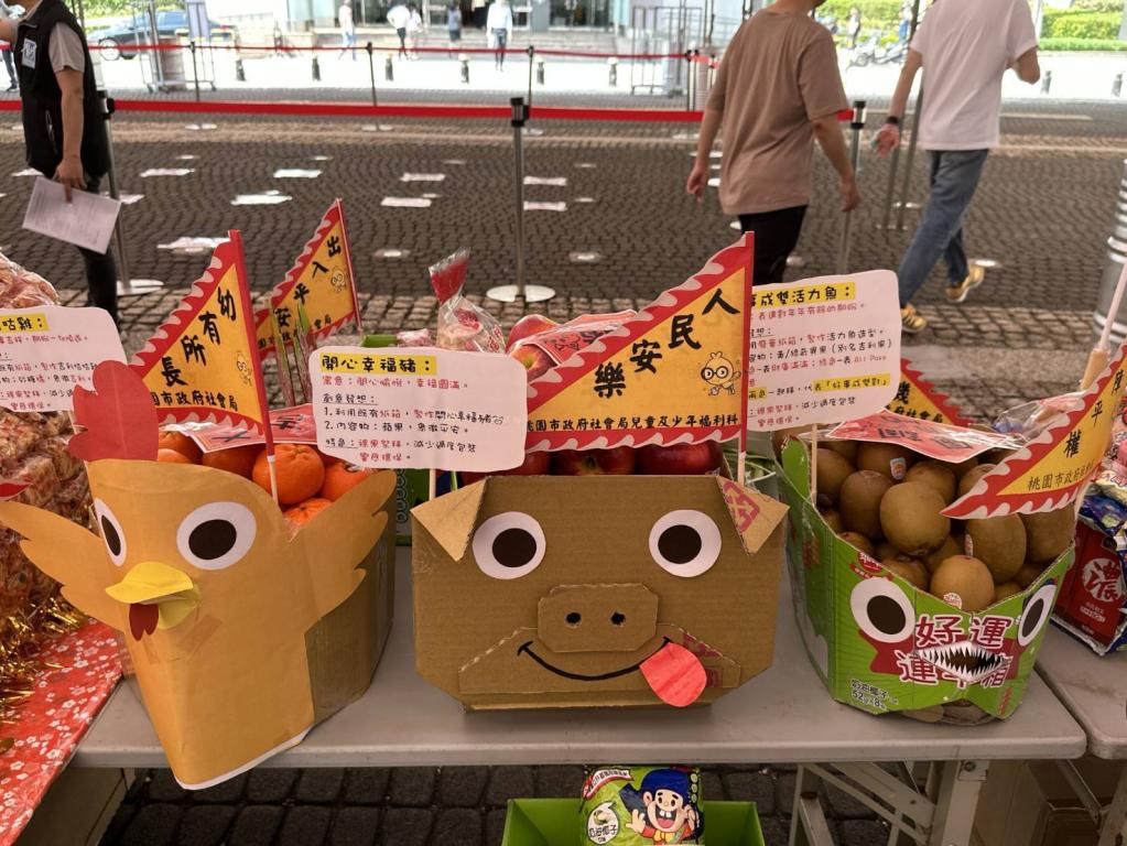 環保局表示,市府更首度舉辦「環保創意祭品競賽」,28個局處以巧思展現低碳敬意。其中包括以千台斤在地米堆疊而成的「好農神豬」,象徵豐收與土地守護;以回收紙箱打造的遊戲角色造型祭品箱,兼具童趣與環保;以及以報紙摺製的「平安桃」與百顆小桃子,傳遞祝福與低碳精神。祭拜結束後,部分祭品透過公益平台送至社區關懷據點與弱勢家庭,將環保行動延伸至社會關懷,展現創新、永續與公益三者兼具的實踐力。
