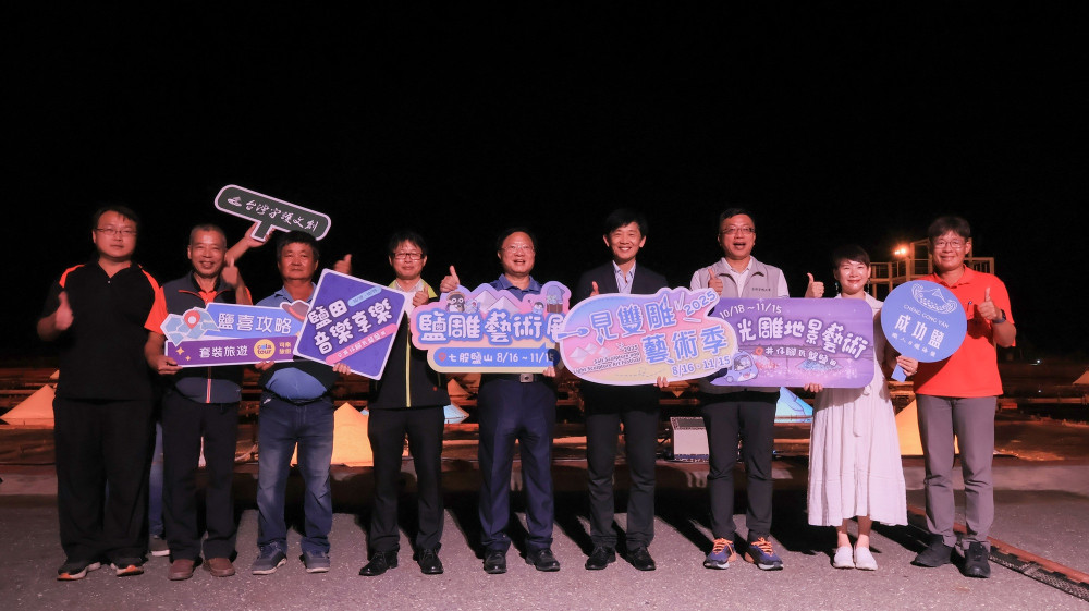 【大成報記者杜忠聰/臺南報導】2025 一見雙雕藝術季光雕地景藝術,將於 10 月 18 日(週六)在臺南北門井仔腳瓦盤鹽田正式登場。15日晚間,主辦單位交通部觀光署雲嘉南濱海國家風景區管理處(簡稱雲嘉南管理處),在此舉辦試燈記者會,提前點亮百年鹽田,邀媒體與民眾感受光影交織的絢麗奇景。