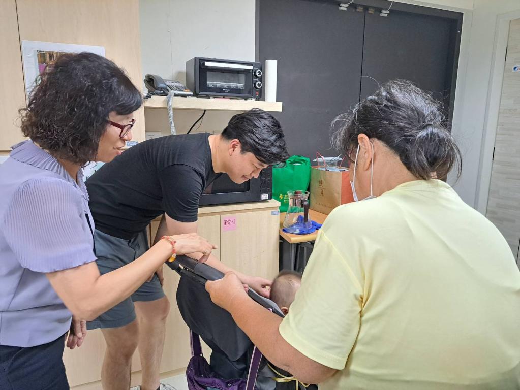 曾祖母於日前用兒童椅推著稚嫩的曾孫到板一社福中心,主責社工姜延蓉立即抱起小孩呵護,小孩並不怕生。姜延蓉表示,已服務該個案快一年,因此小孩喜歡她抱抱。陳書玄當場給予3萬元,社會局副局長許秀能也代表提供實物銀行奶粉、尿片等物資,曾祖母相當感激。