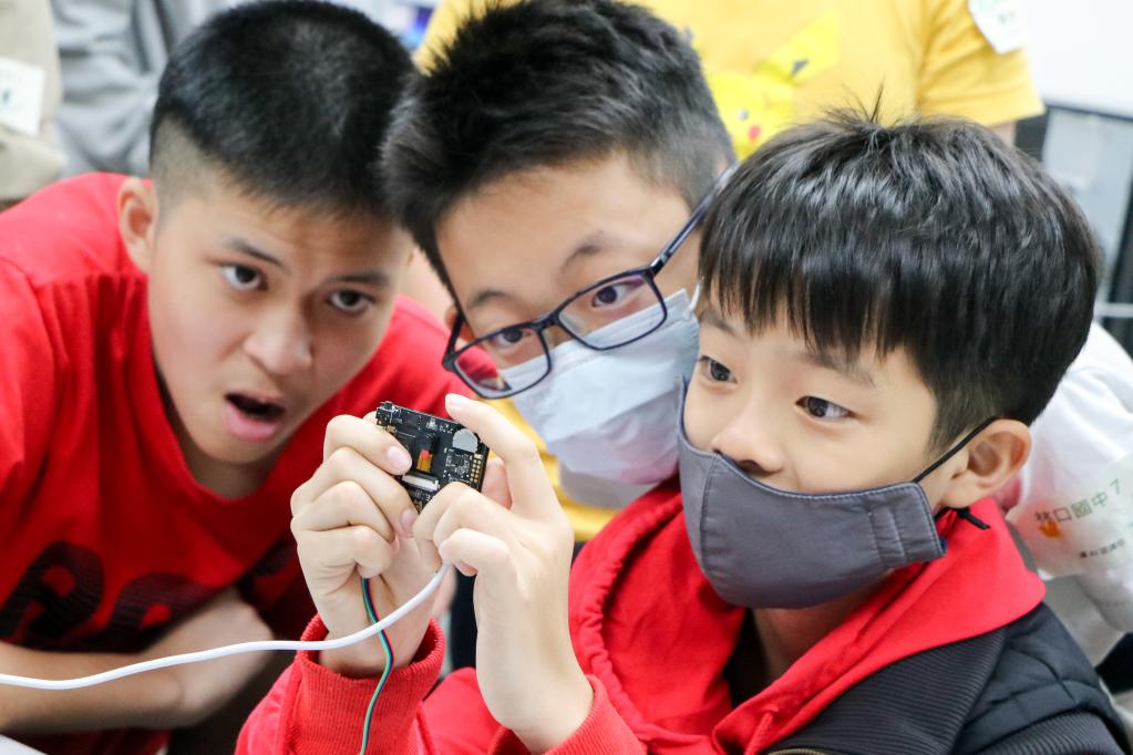 圖說:學生透過實際操作 Webduino 微控制板,學習影像辨識與感測應用。