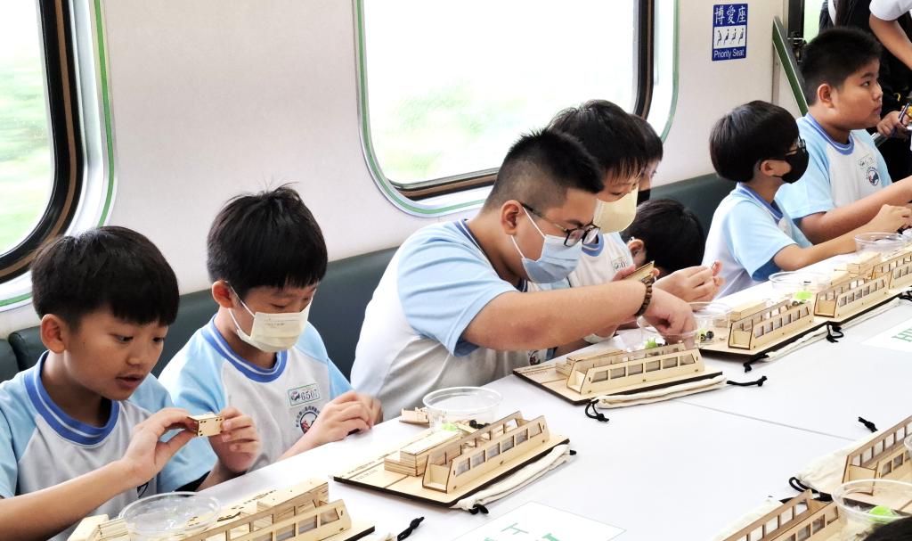 圖說:學生在火車上製作磁浮列車,了解磁力的應用。