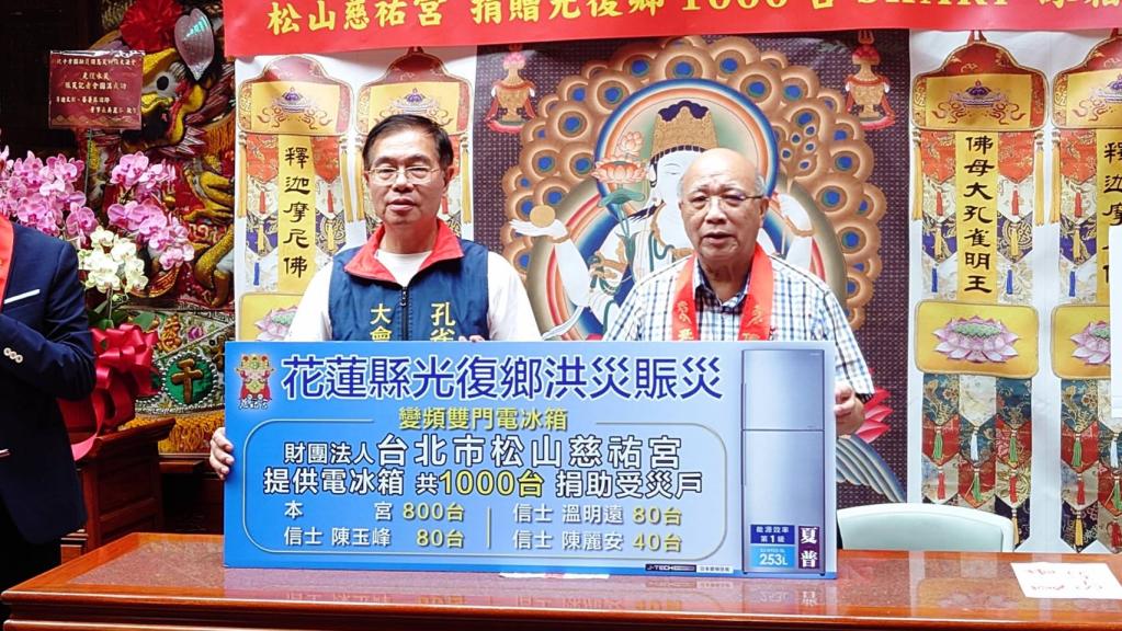 慈祐宮亦號召各界善心人士共同參與災後重建,目標募得共2,000台冰箱,幫助受災地區居民恢復基本生活。大會總會長蔡鴻祺董事長,為花蓮「雲山水」渡假山莊負責人,災後即刻親赴現場協助救援,展現宗教慈悲與實踐精神。他表示,慈祐宮已先行捐出1,250萬元作為災區救助基金,期盼拋磚引玉,號召更多人共襄善舉。