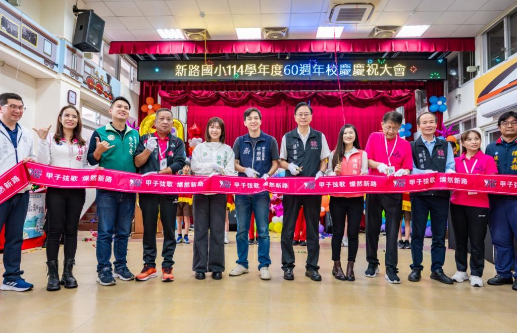 【大成報記者袁慧心/桃園報導】桃園市長張善政今(24)日上午前往龜山區,出席「新路國小60週年校慶暨運動大會」。張市長表示,新路國小創校一甲子以來,持續秉持全人教育理念,不僅在學業表現屢獲佳績,體育與藝文領域亦表現優異,是兼具人文素養與多元展能的優質學校。今日有許多校友回娘家共慶母校生日,象徵新路國小六十年的傳承與榮耀。期盼學校在全體師生、家長及校友的共同努力下持續進步,成為桃園教育的典範。