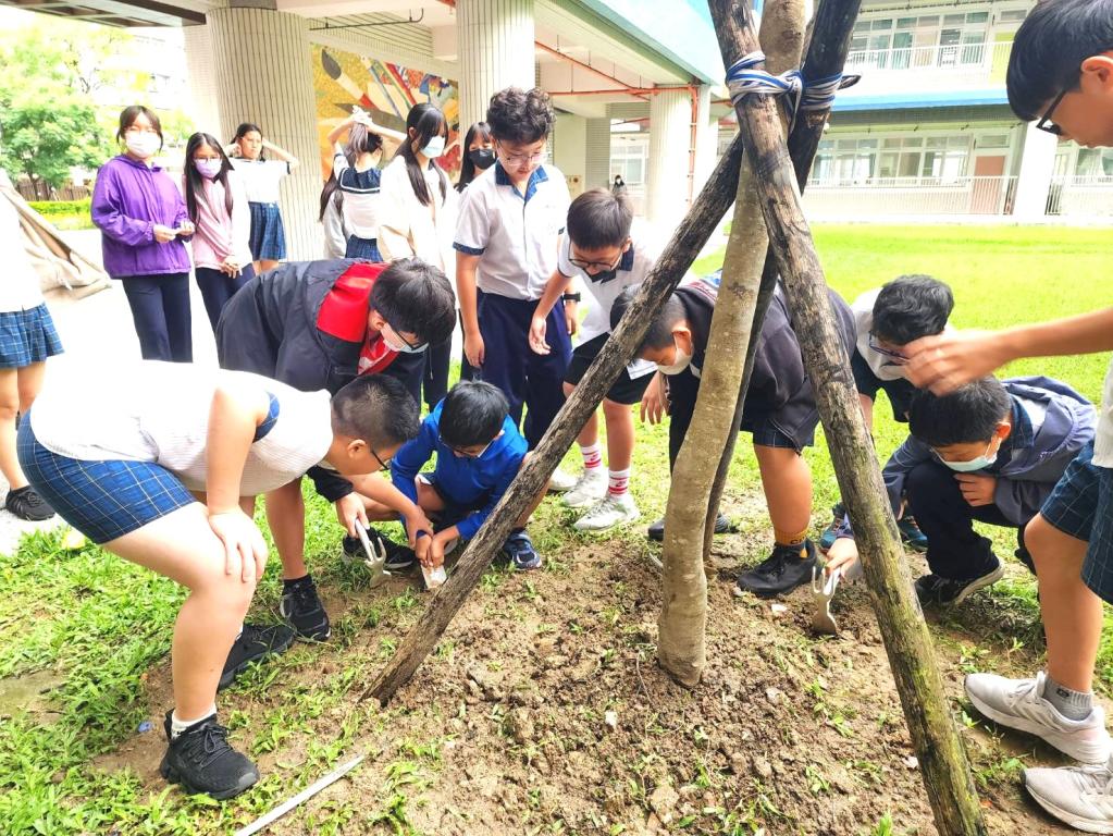圖說:畢業班植樹活動(光蠟樹),增加學校生態固碳量。