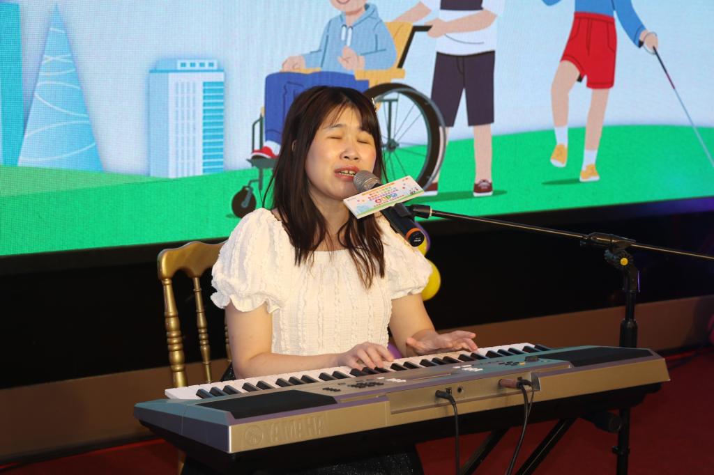 圖說:視障街頭藝人楊玉凡自彈自唱「人要自己走」鼓勵在場身障者,也自我勉勵。