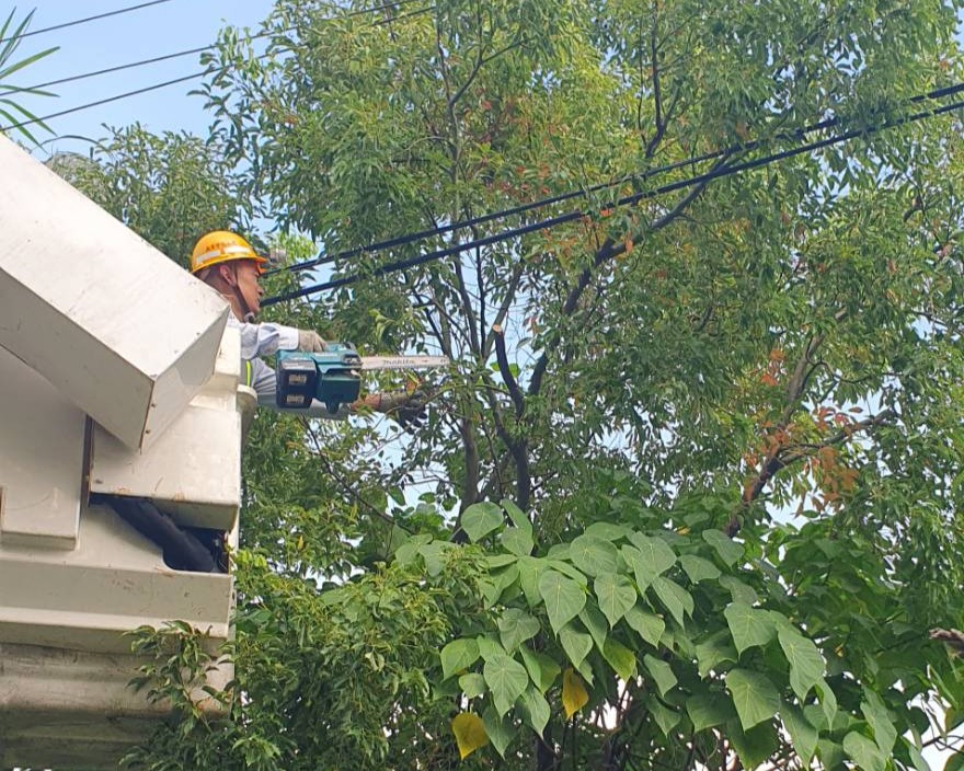為將颱風可能造成的停電損害降至最低,台電鳳山區處把握颱風侵台前的周末假日,加速轄區內樹木修剪作業,期盼透過預防性維護,有效減少強風吹倒樹木枝葉觸碰架空線路而引發的停電事故,確保民眾用電安全。