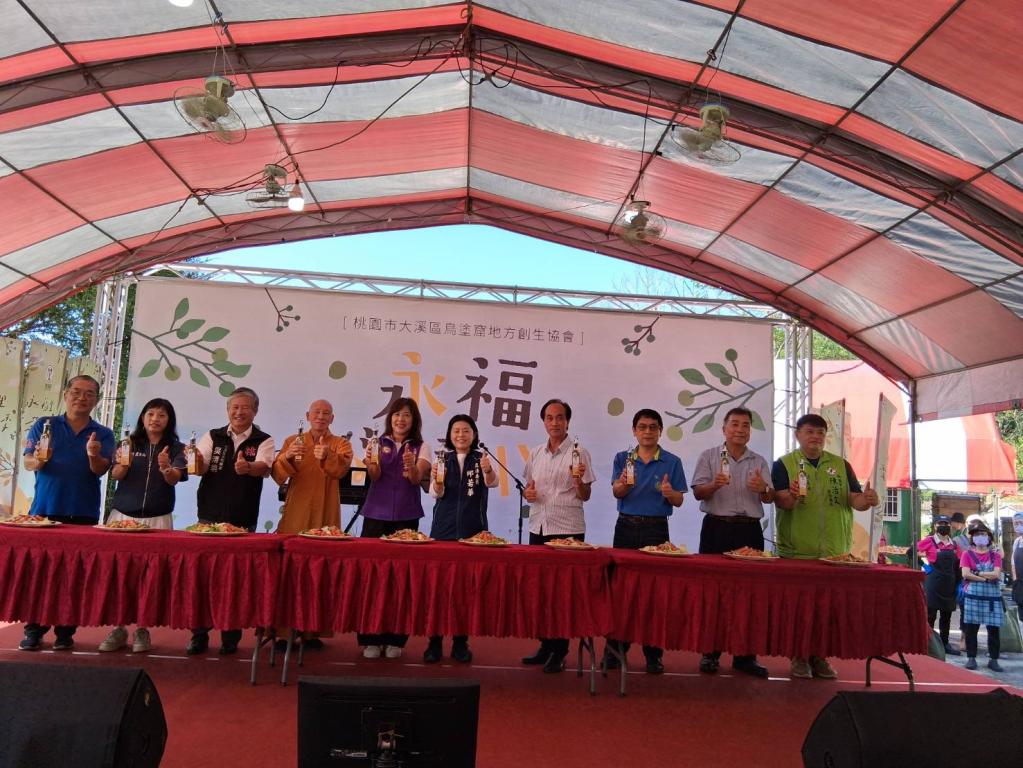 【大成報記者袁慧心/桃園報導】桃園市大溪區烏塗窟地方創生協會主辦的「苦茶油文化體驗節」,今(11/8)日在大溪區永福里龍山寺前廣場熱鬧登場,吸引數千位民眾、親子家庭、周邊各協會及農場共襄盛舉。活動以「一滴油的時光旅程」為主題,融合農業、文化與手作體驗,讓參與者在山風輕拂間,細細品味苦茶油的香氣與永福的人文故事。