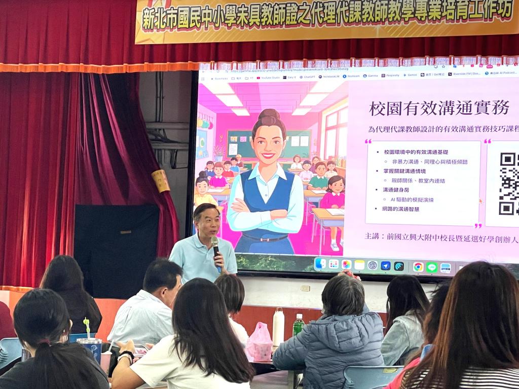 (大成報記者張玉玲/新北報導)面對全臺教師短缺挑戰,新北市教育局率全國之先,11月起攜手國立臺灣師範大學教育學院,開設「新北市114學年度國民中小學未具教師證之代理代課教師教學專業培育工作坊」,系統化培育新世代教師。課程結合「有效溝通」、「教學專業」、「入班備觀議課」、「寒假回流」及「實戰課程」等五大模組,協助有志投入教育現場的教師深化親師生溝通與教學實務能力,達成「無縫接軌、順利成師」的目標,為教育現場注入專業與熱忱的新能量。