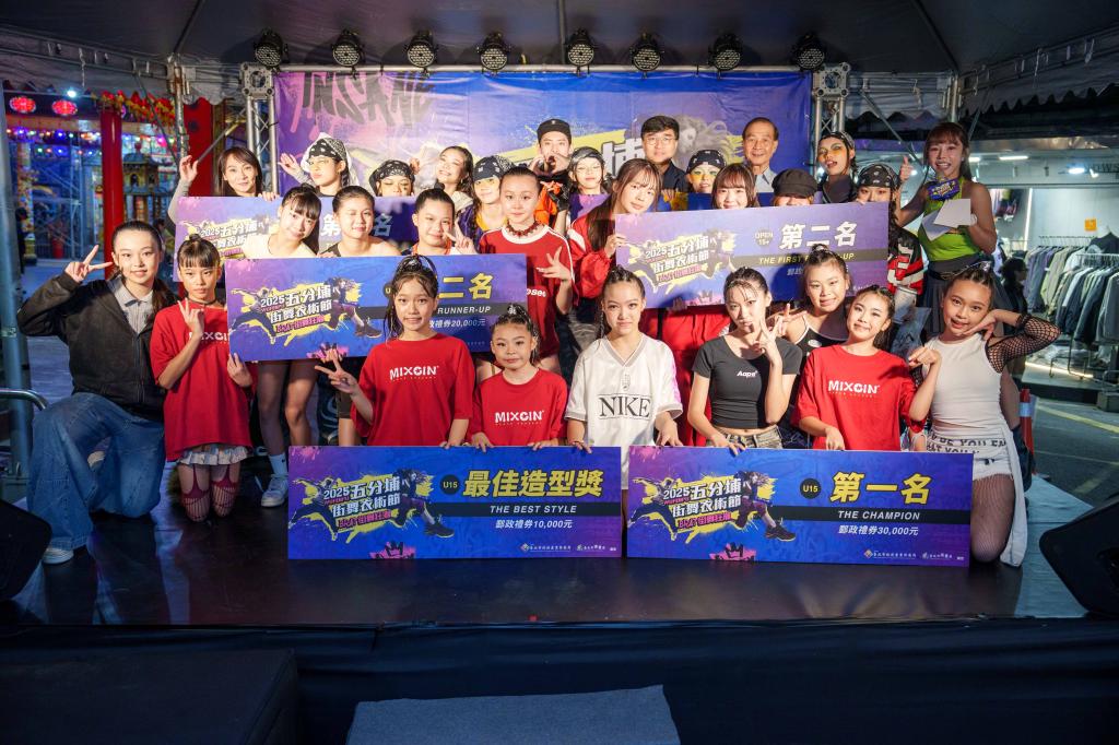 今年的賽事完美呈現五分埔多元並充滿活力的商圈精神,U15組最終由MIXCIN DIVINE隊脫穎而出榮獲第一名及最佳造型獎 ,MIXCIN BOSSy隊則獲得第二名;OPEN 15+組由Monster beats隊以精湛舞技榮登第一名及最佳造型獎寶座,第二名則為FOUREIGN隊。