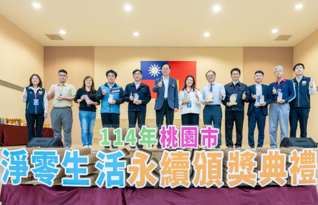 【大成報記者袁慧心/桃園報導】桃園市長張善政今(17)日下午於市府B2大禮堂,出席「114年桃園市淨零生活永續頒獎典禮」,表揚192個永續績優單位。張市長表示,今(114)年民間綠色採購總金額在十年間成長五倍,綠色產品銷售額亦成長三倍,無論在採購端或商品端,相關數據皆顯示企業與社會在永續發展上的貢獻,感謝企業、社會各界與市府攜手推動永續、共創宜居城市。