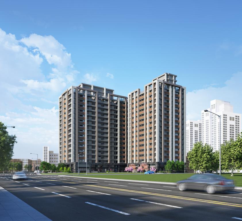 圖說:紅布朗花園大尺度基地與開闊棟距外觀,結合司法園區與大片綠意,呈現宜居的住宅氛圍(外觀3D透視圖提供:紅布朗花園)