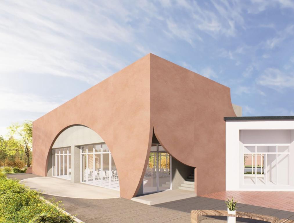 新屋區公所表示,埔頂市民活動中心建築融合現代主義與極簡風格,以簡潔幾何量體呈現自然與現代兼具的社區意象。白色立面搭配淡粉色調,並以綠樹景觀營造靜謐氛圍,讓居民可在半戶外空間進行休憩交流,享受周邊自然與農場景致。