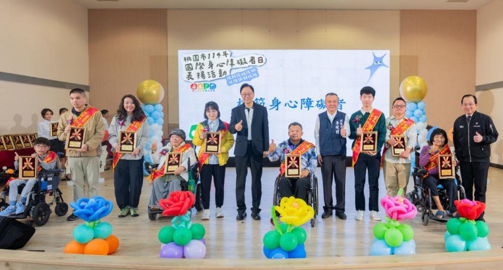 【大成報記者袁慧心/桃園報導】桃園市長張善政今(29)日上午前往市政府B2大禮堂,出席「國際身心障礙者日表揚活動」。張市長表示,本次表揚不僅是肯定受獎者的努力與支持,更是向所有投入家庭照顧與相關服務的支持者致上謝意。社會大眾應共同以理解取代標籤、以接納化解誤解,攜手打造更友善、更包容的環境,讓每一位身心障礙朋友都能在城市中自在展現生命的價值。