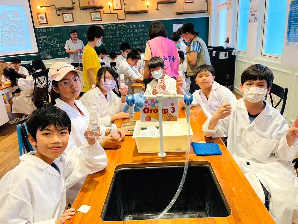 圖說:學生於活動中親手調製完成精華液,開心展示成果。