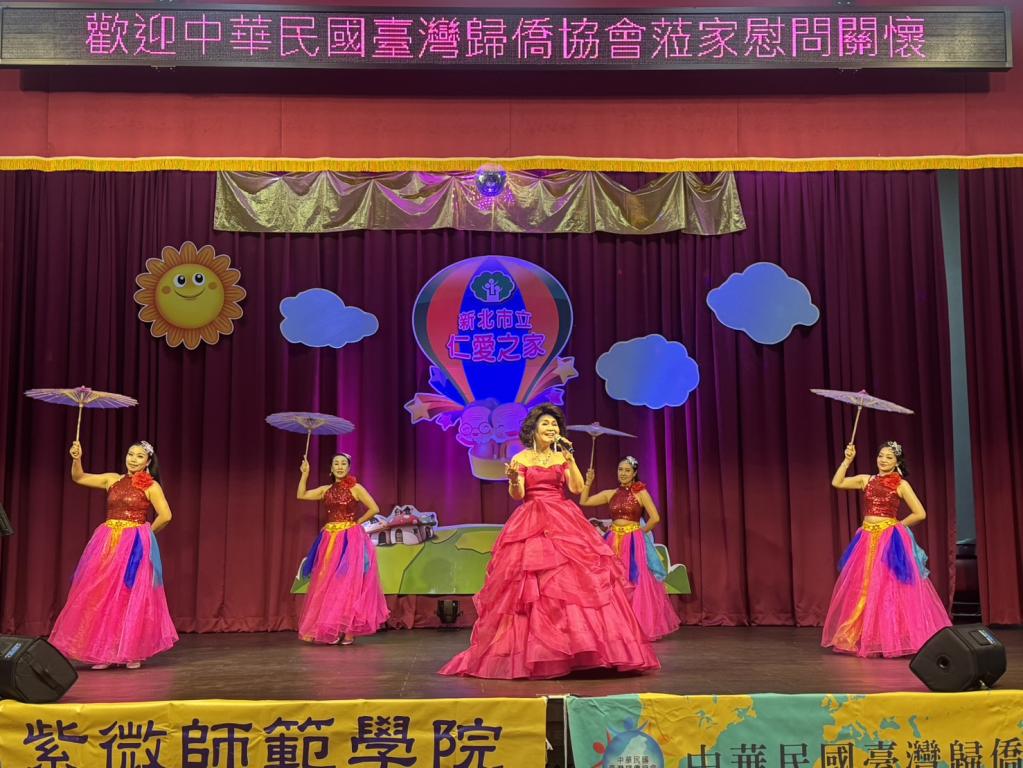 (大成報記者張玉玲/新北報導)歲末天寒,歌聲暖長輩。台灣紫微公益關懷協會召集人上官明莉與中華民國臺灣歸僑協會理事長蘇明正,於4日下午率領10多位資深藝人前往新北市立仁愛之家關懷義演。一曲「往事只能回味」經典老歌,喚醒長輩年輕歲月;侯麗芳「望月想愛人」和蘋果花歌后楊燕自創「我真的好愛你」,更讓長輩聽得陶醉。僑委會副委員長張良民也首次親臨會場,向長輩送上溫暖祝福。