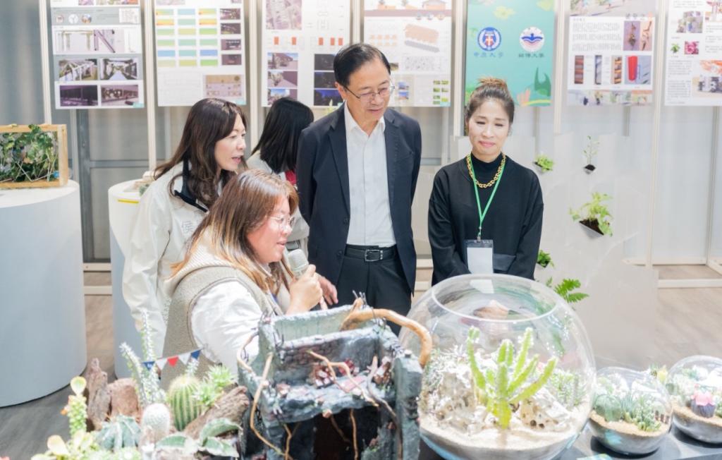 張市長指出,桃園擁有豐沛的青農與創意能量,「植感桃園」平臺除協助青年品牌提升能見度,也讓市民近距離感受植物設計之美。張市長也推薦市府一樓川堂的「植感桃園植生牆」,展出多件青農特色植栽作品,造型獨具巧思,不僅妝點室內綠意,更展現植藝與設計融合的高度創意。