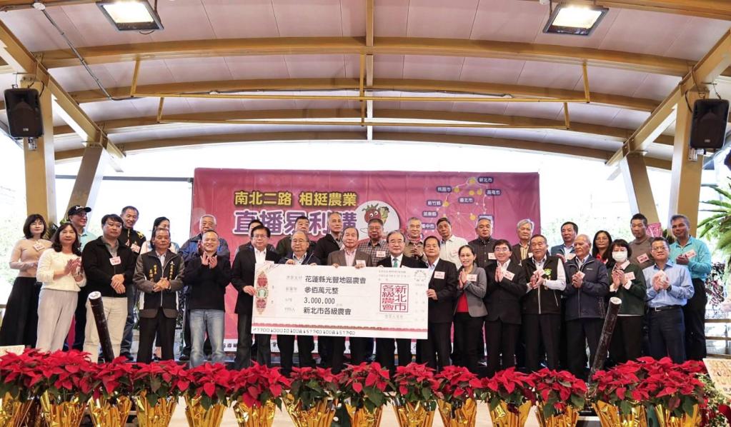 本次活動可是「好事成雙再加一」──除啟動農產品直播到店取貨服務外,今年「希望廣場農民市集」迎來25週年;基於「農會一家」精神,同場也舉開由新北市各級農會共同挹注受馬太鞍溪堰塞湖災害重創之光豐地區農會作為重建經費的捐贈儀式,象徵農會體系在面對天災挑戰時同心協力、攜手前行。