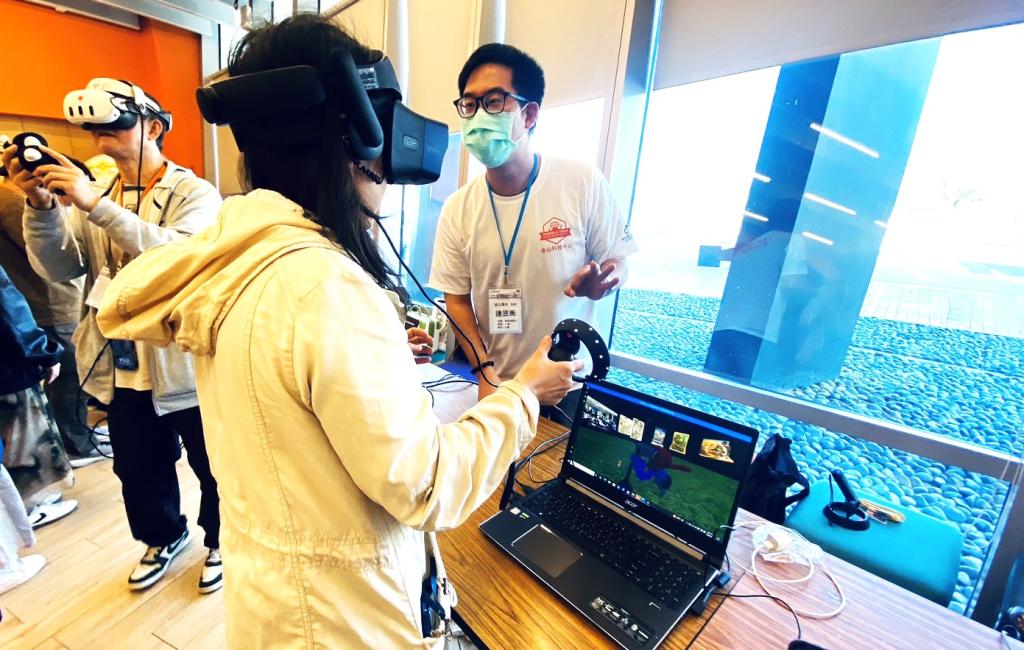 圖說:新北老師體驗VR頭盔虛擬實境。