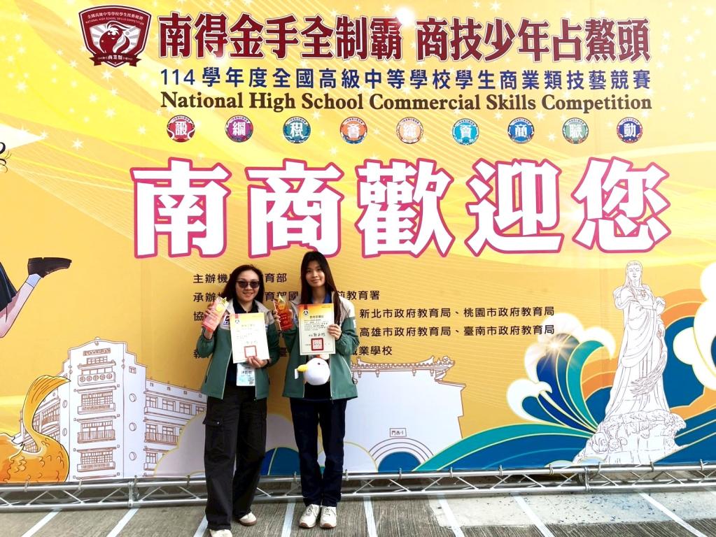 三重商工在本屆競賽成績耀眼,包含平面設計、文書處理及會計資訊表現突出。獲得會計資訊金手獎二名的彭雅蓓表示,長期從基礎概念到乙級技能的高強度訓練,是一場與自己極限的較量。她說:「金手獎不是結束,而是新的起點,未來想持續在會計與商業領域深耕。」感謝師長指導與家人支持,也要感謝教育局與學校提供完善的資源,讓她終於在全國舞台上脫穎而出。