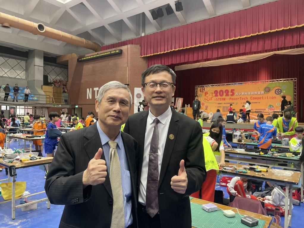 圖說:新北市教育局長張明文表示,新北市長期以 STEAM 教育為科學教育核心,本次共有 127 隊晉級「2025 iSTEAM——PowerTech 青少年科技創作競賽」全國賽,並將於 12 月 13、14 日在國立臺灣師範大學,與全國及國際高手交流競技。(圖左為全國賽執行長—國立臺灣師範大學洪榮昭教授)