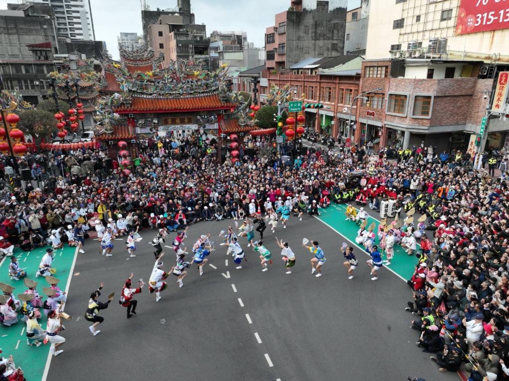 【大成報記者袁慧心/桃園報導】為支持桃園市政府推動「舊城再生」政策,桃園大廟景福宮於今(12月14日)盛大舉辦「舊城創生・共創繁榮」假日市集活動。活動於大廟廣場規劃胖卡市集、街頭藝人精彩演出,並重磅邀請日本東京高圓寺阿波舞團來台演出,首度在桃園舊城區公開登場,為活動注入濃厚的國際文化交流色彩。
