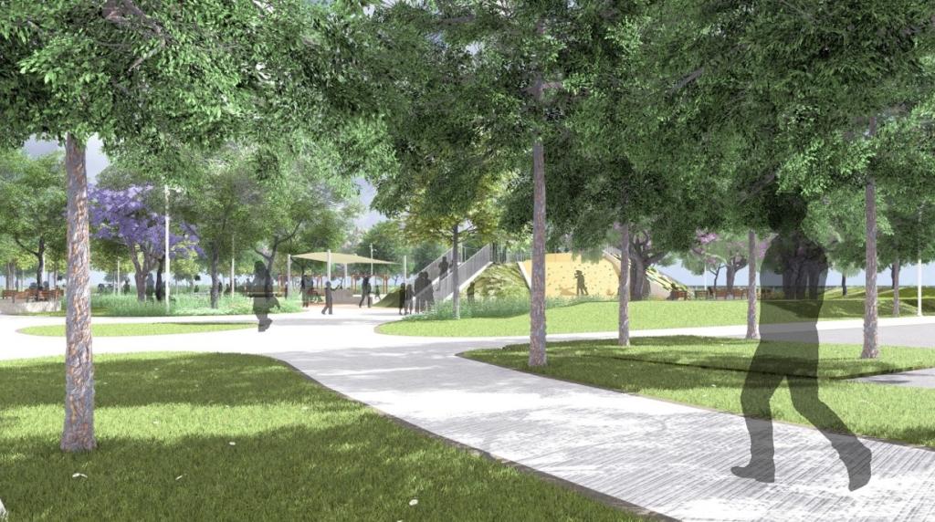 圖說:竹竿埤公園移植喬木營造散步步道。( 圖/工務局提供)